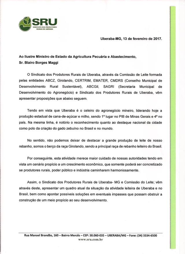 Entre as preocupações dos produtores, está a oscilação do preço do leite e a necessidade de maior participação da indústria na difusão de tecnologias. «Essa foi a nossa proposta, para que o governo crie incentivos fiscais para que a indústria entre nesse processo. Nós vivemos um momento de transição da atividade leiteira e para conquistarmos mercados com sanidade, produtividade e qualidade e, para isso, nós precisamos de transferência de tecnologia», disse Romeu Borges, presidente do Sindicato Rural de Uberaba. O documento foi elaborado por lideranças do setor leiteiro do Triângulo Mineiro por meio de uma comissão foi formada no fim do ano passado para tentar fortalecer a atividade. Um dos pontos questionados pelo setor foi a importação de produtos lácteos, que no ano passado registrou 247 mil toneladas, volume 80% em relação a 2015. Os números apresentam um déficit de US$ 480 milhões, o pior desempenho da balança comercial de lácteos desde 2013.